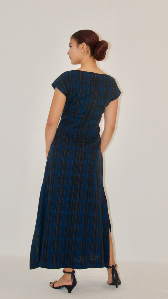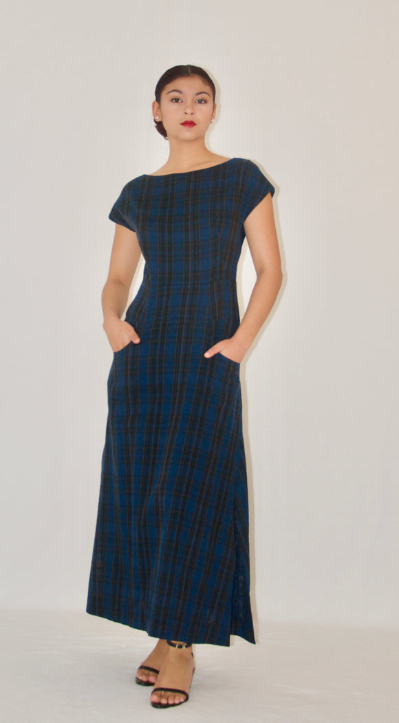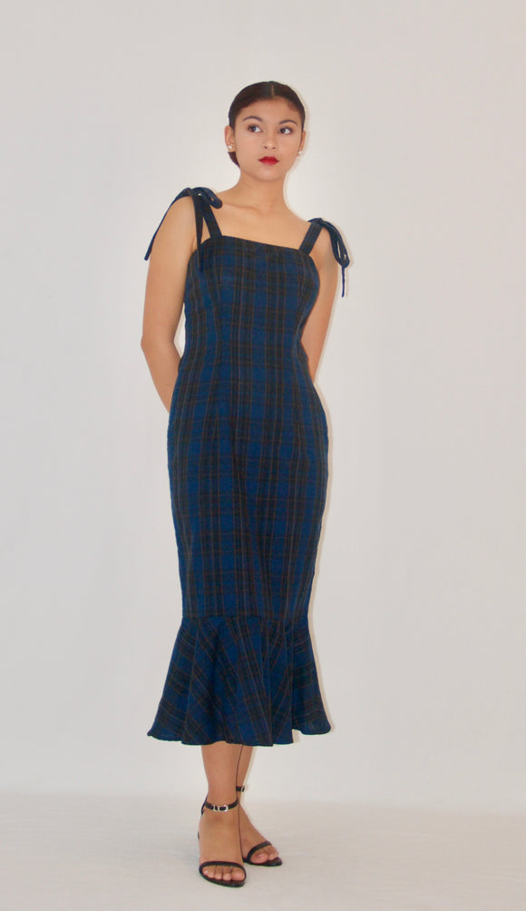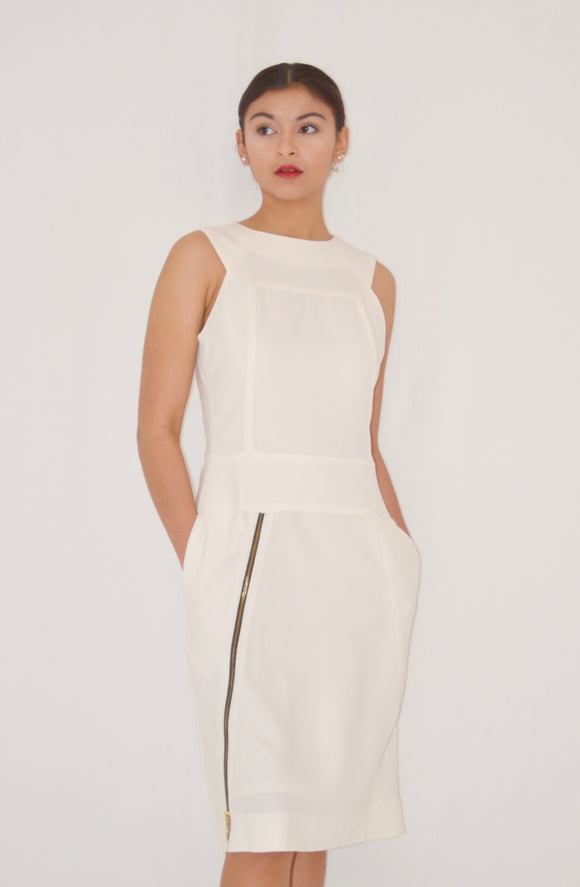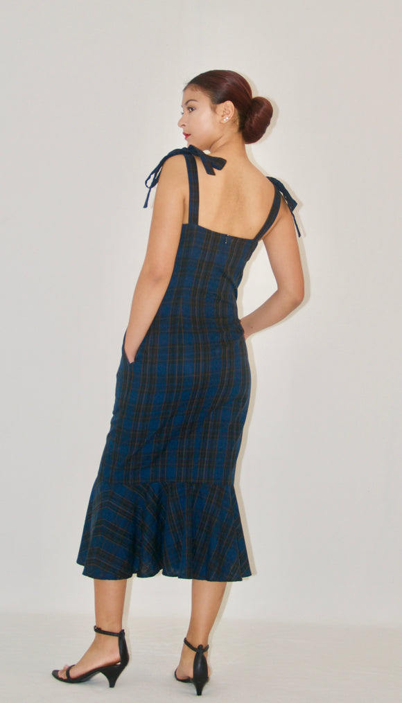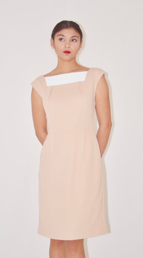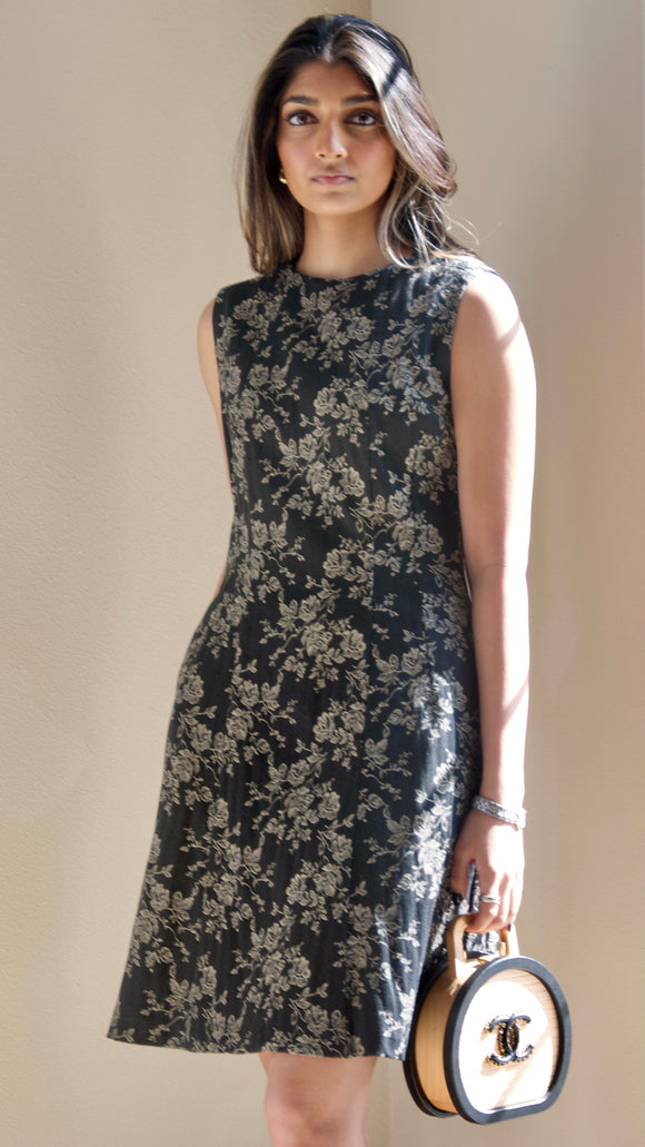 Cream and Black Square Pattern Tie-Waist Shirtdress
