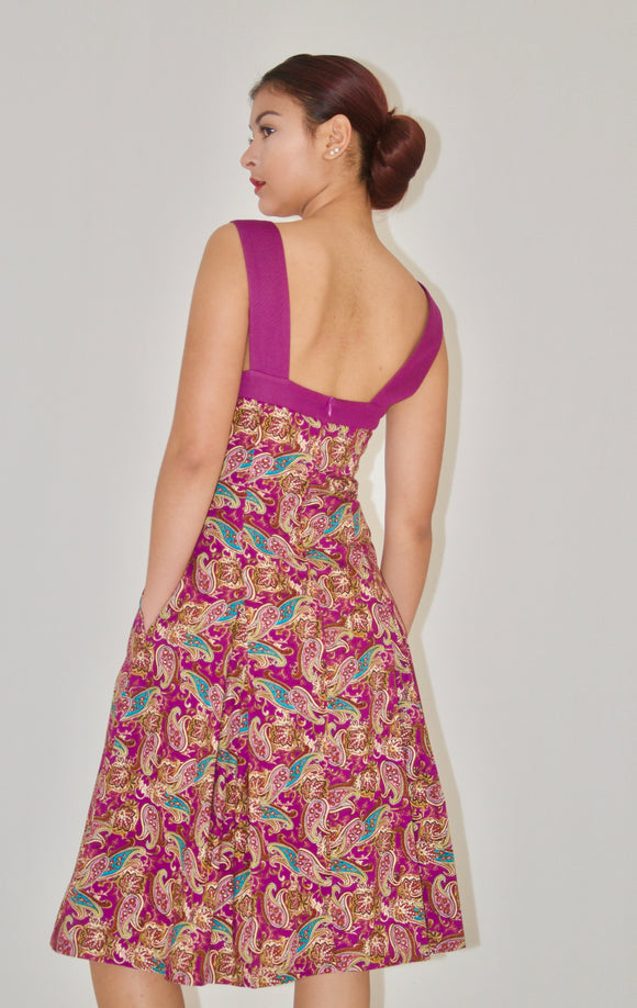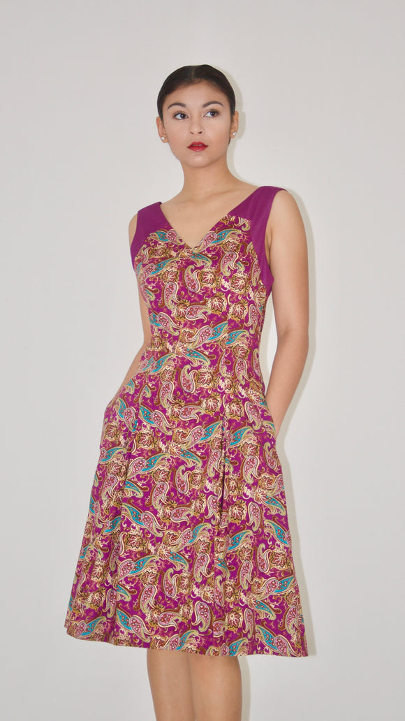 Purple Paisley Print Cotton Poplin A-Line Dress