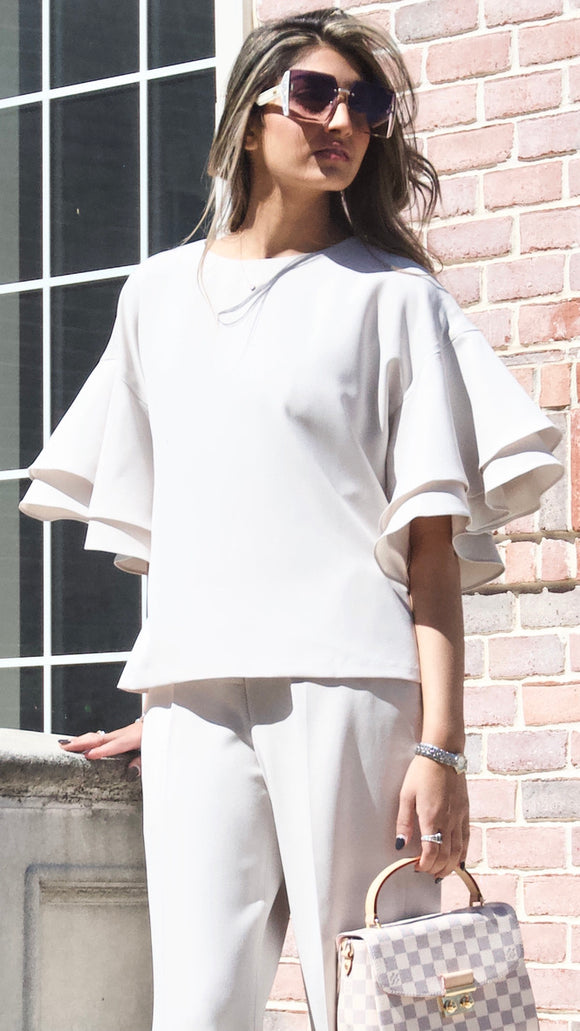 Cream Fluted Sleeve Top