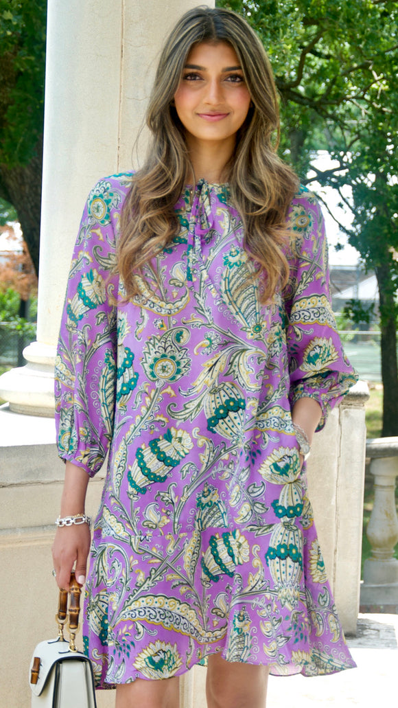 Lavender Paisley Print 3/4 Sleeve Shift Dress