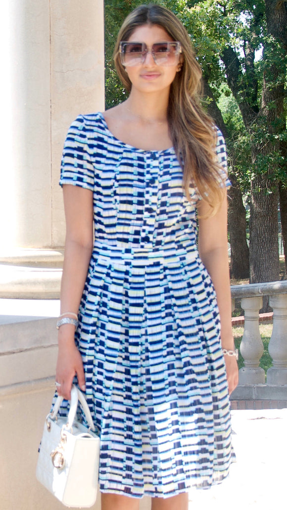 Purple and White Butterfly Print Fit and Flare Cotton Dress
