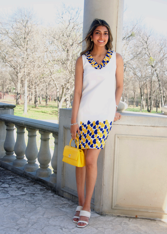 Yellow and Navy Heart Print Sleeveless Shift Dress