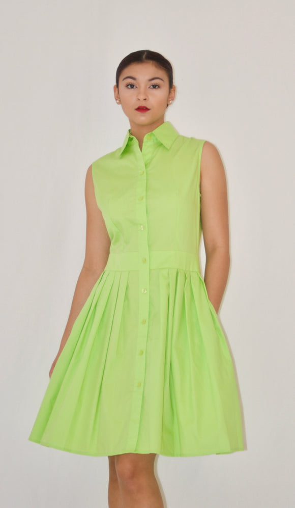 Gray and White Sleeveless Checkered Cotton Shirtwaist Dress