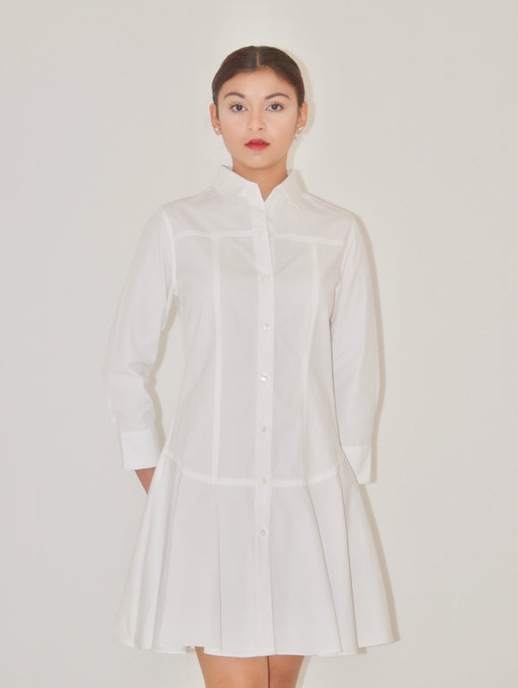 Orange Floral Print Cotton Poplin Shirtwaist Dress