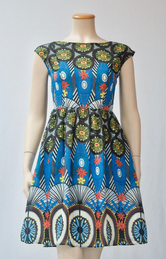 Blue and Yellow Floral Cotton Poplin A-Line Dress