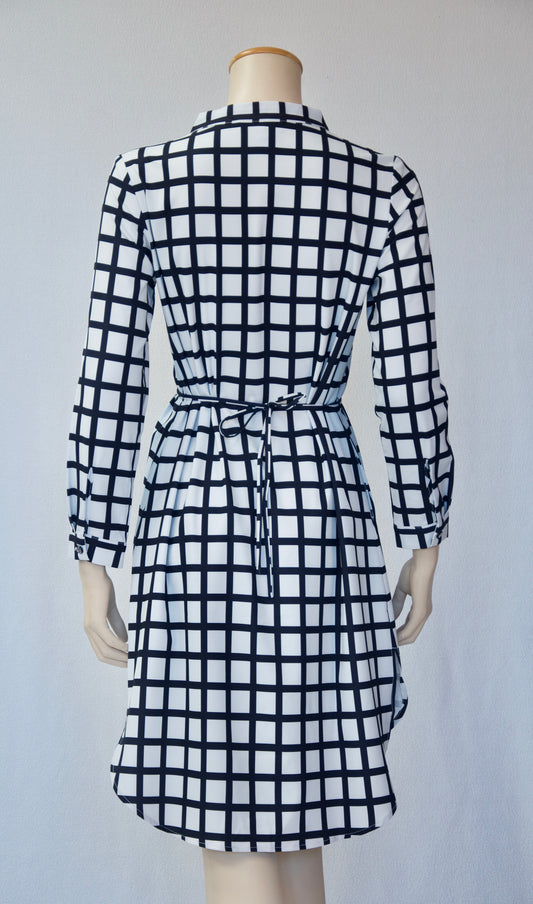 White and Gray Pinstripe Shirtdress