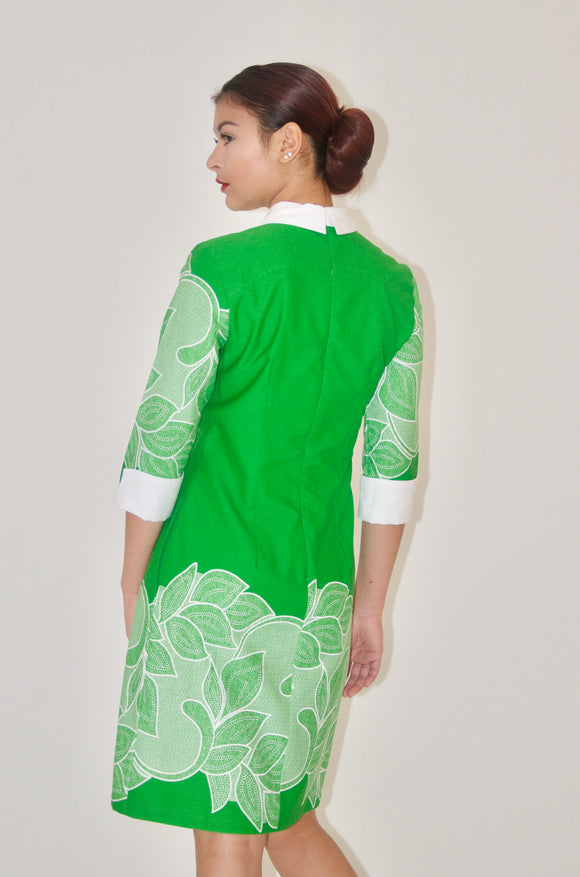 Green and White Print Cotton Poplin Sheath Dress