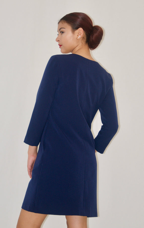 Navy 3/4 Sleeve V Neck Dress