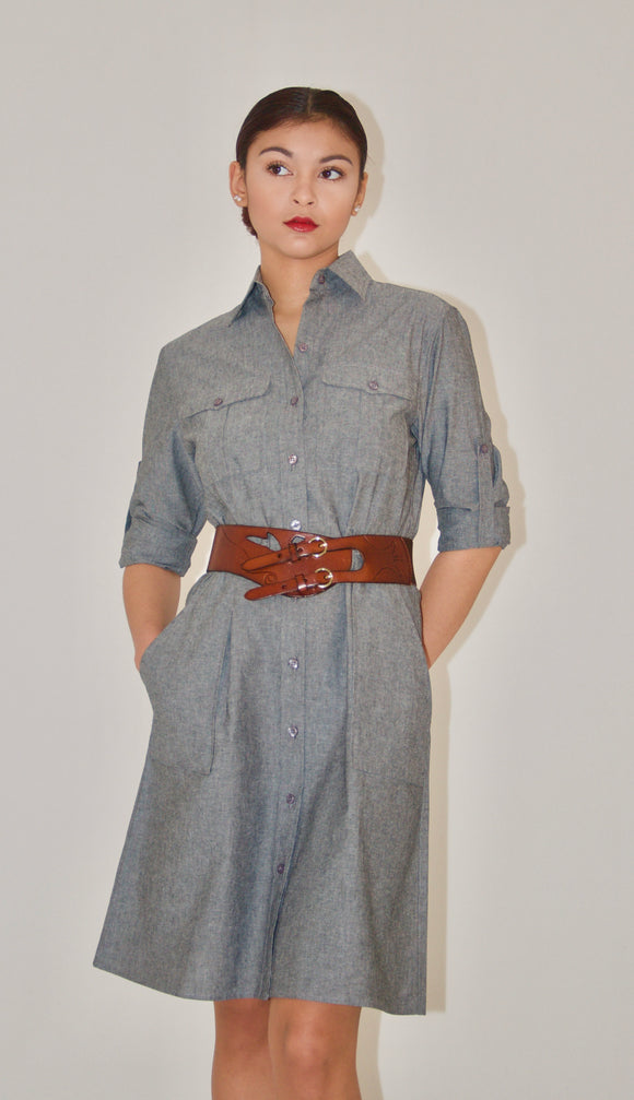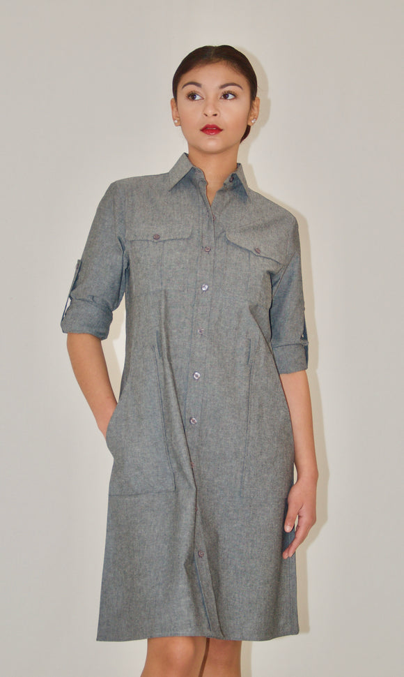 Dark Pink Cotton Poplin Sheath Shirt Dress