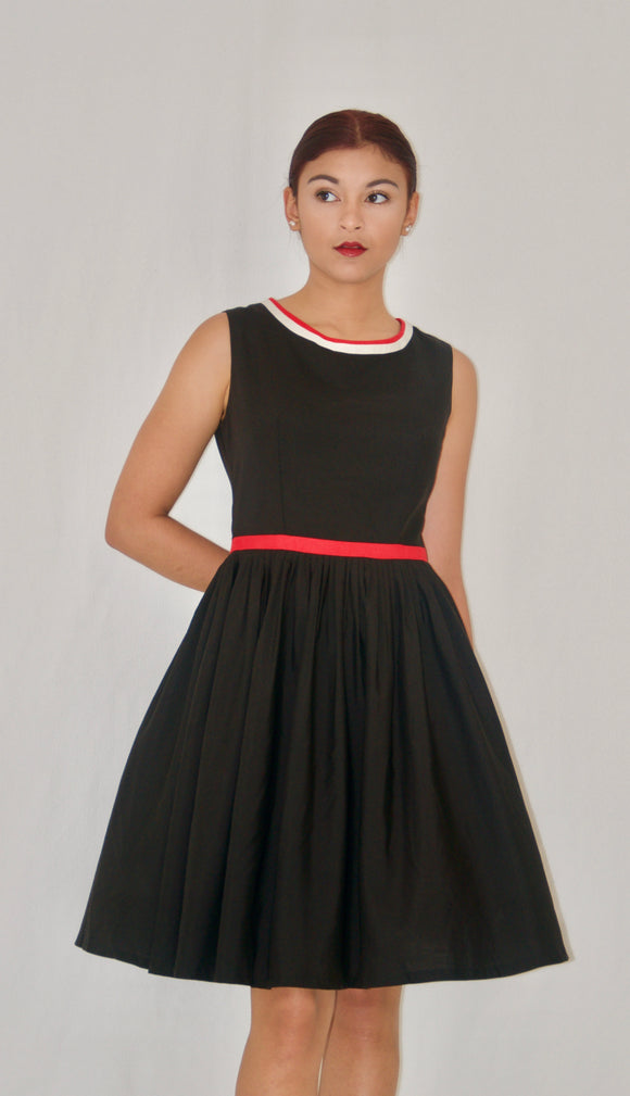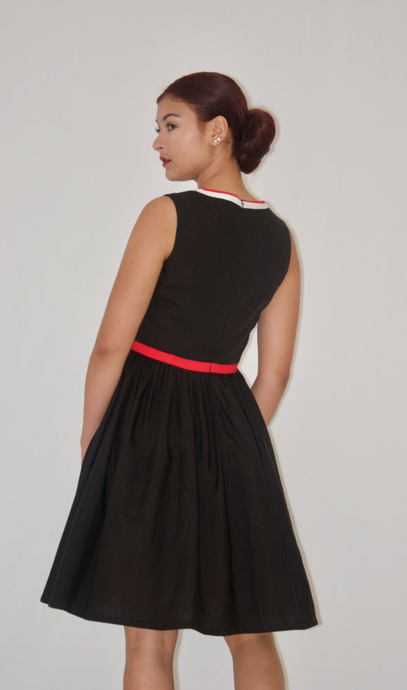 Black Cotton Fit and Flare Cocktail Dress