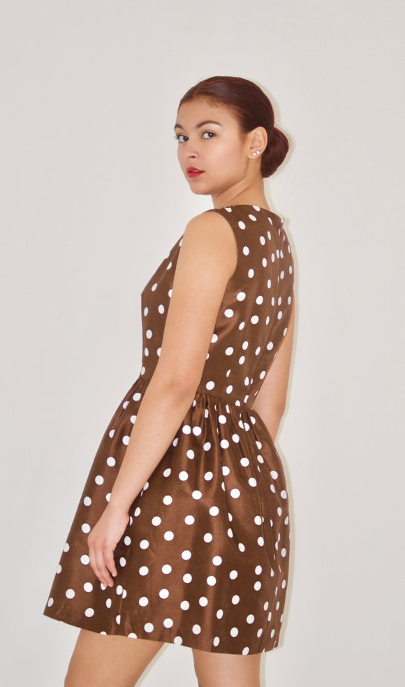 Brown Polka-Dot Print Fit and Flare Dress
