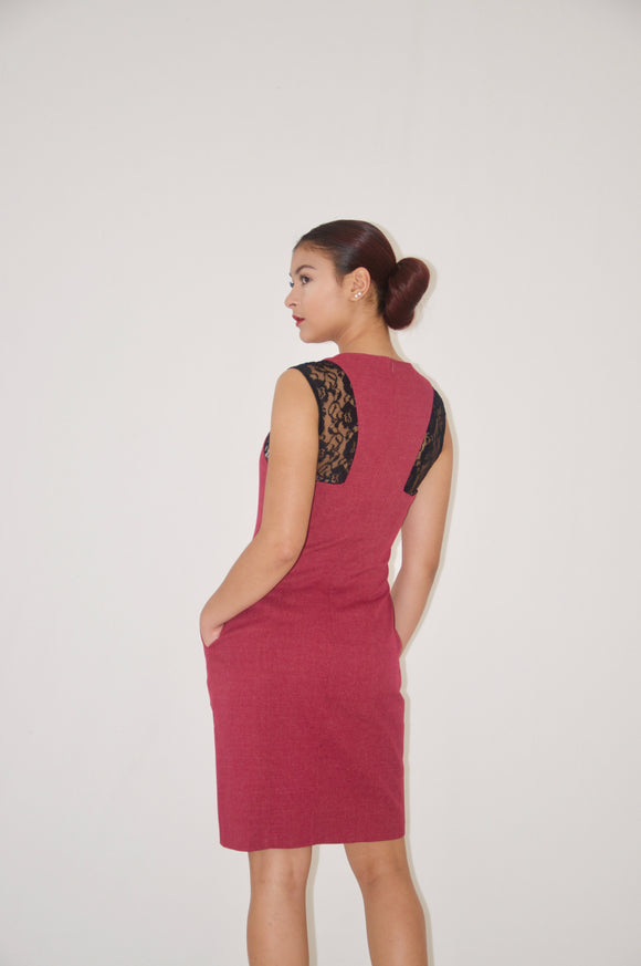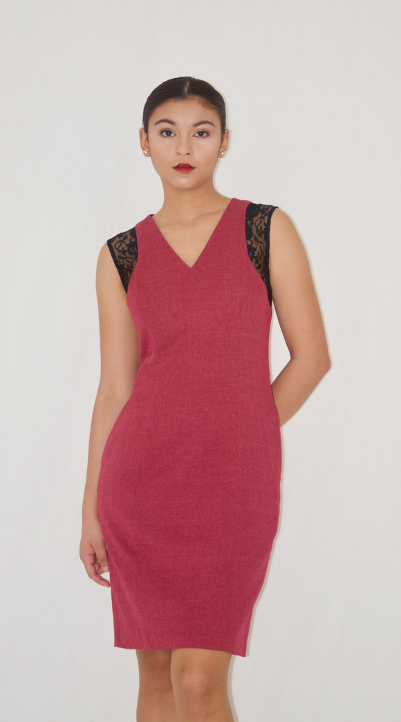 Burgundy Lace Detail Sheath Dress