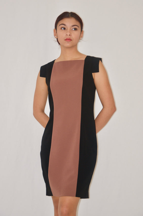 Brown and Black Color Block Sheath Dress