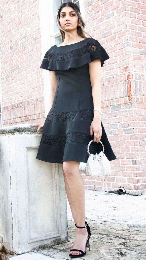 Black Lace Detail A-Line Dress