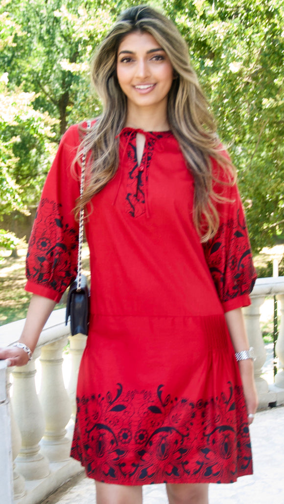 Red One Shoulder Roses Appliqué Detail A-Line Midi Dress