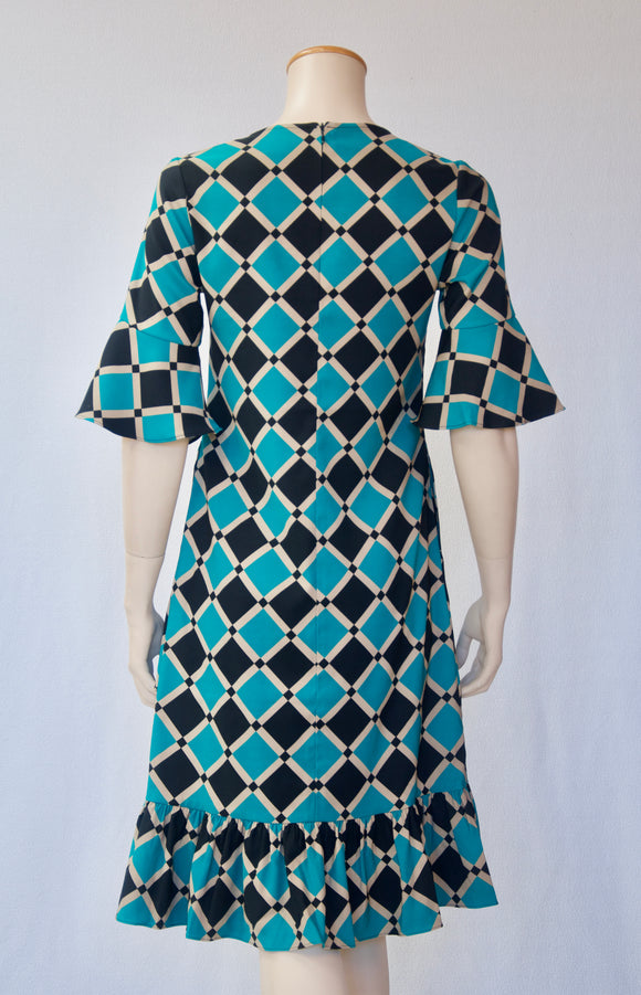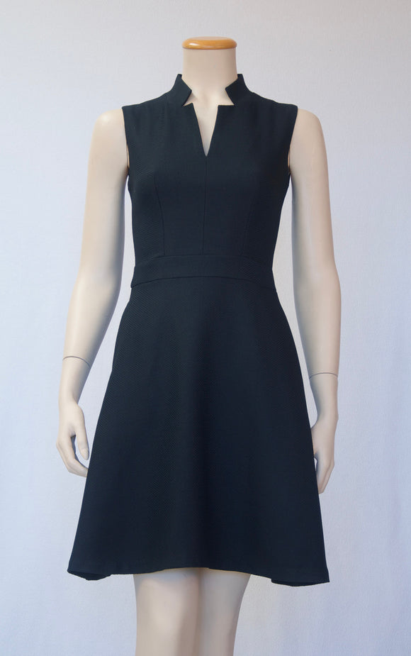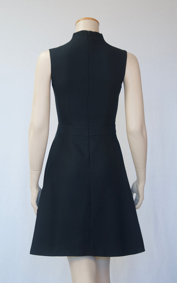 Achromatic Polka-Dot Print Fit and Flare Dress