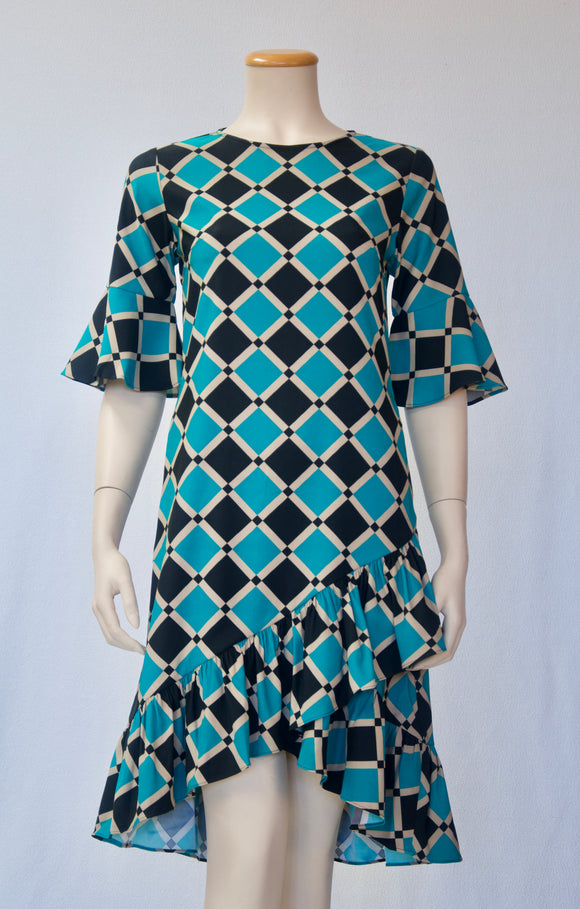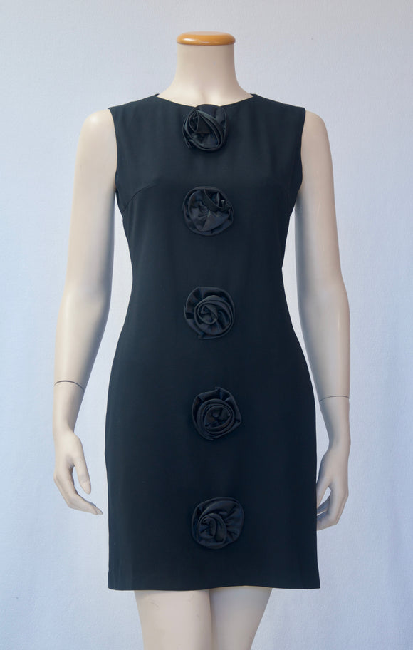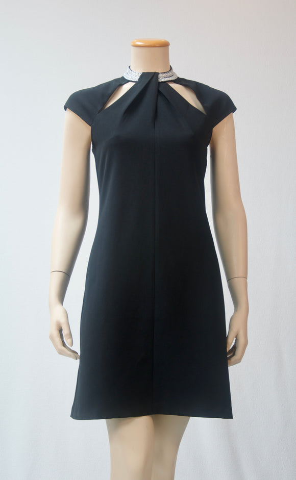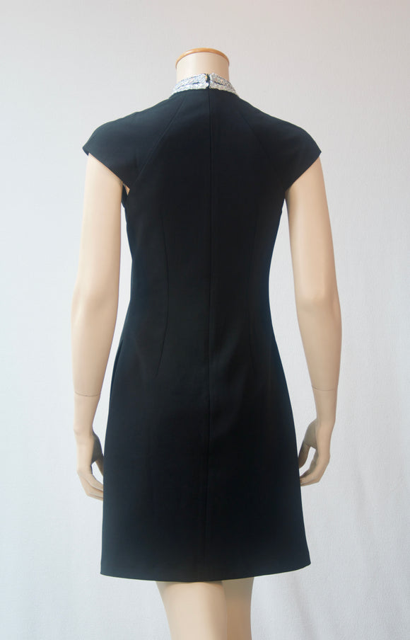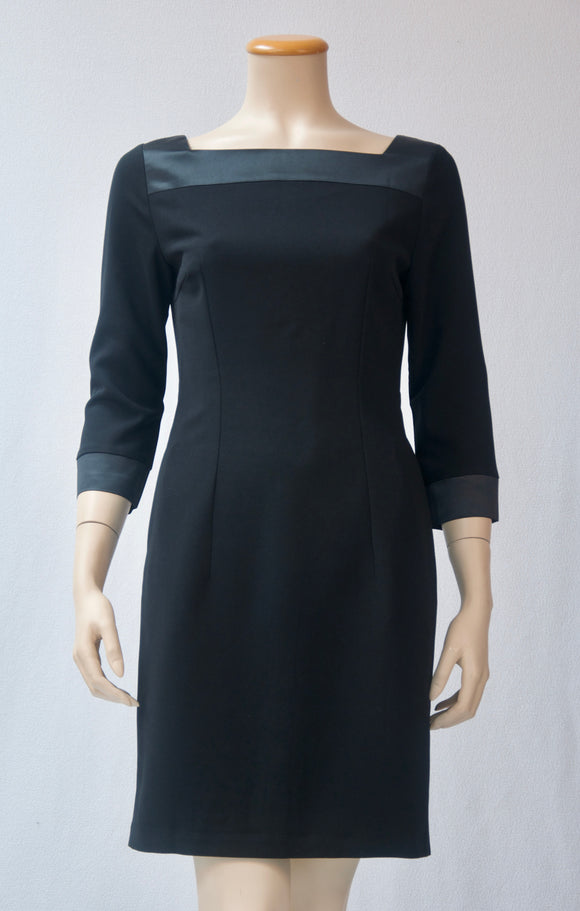 Black 3/4 Sleeve Satin Detail Mini Dress