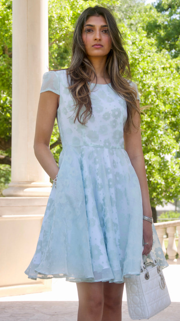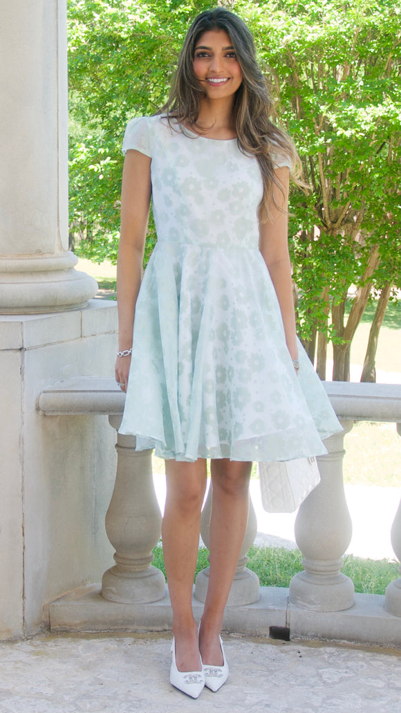 White and Green Floral Print Sleeveless Princess Seam Dress