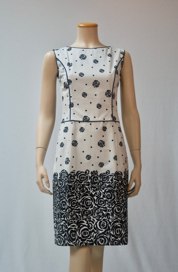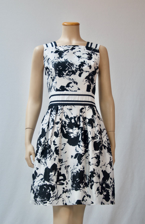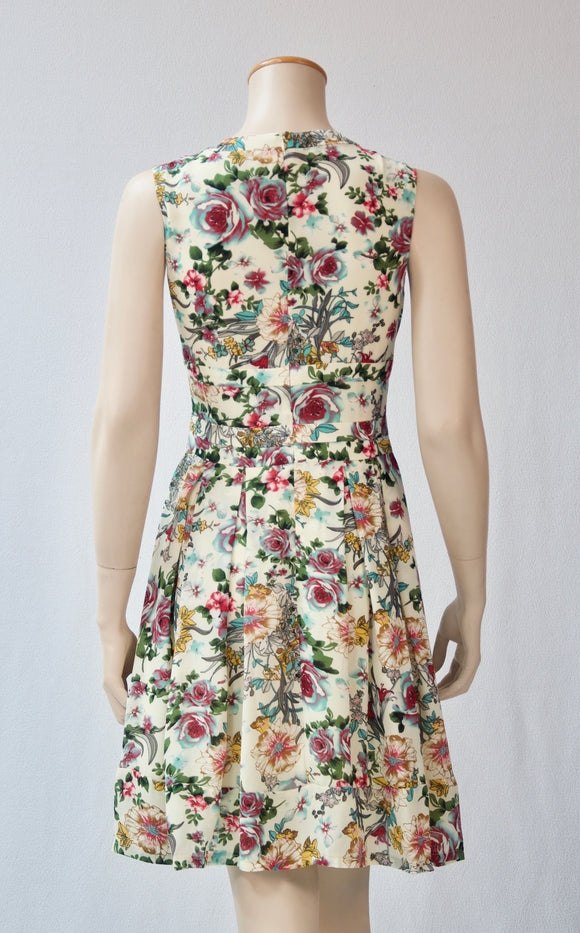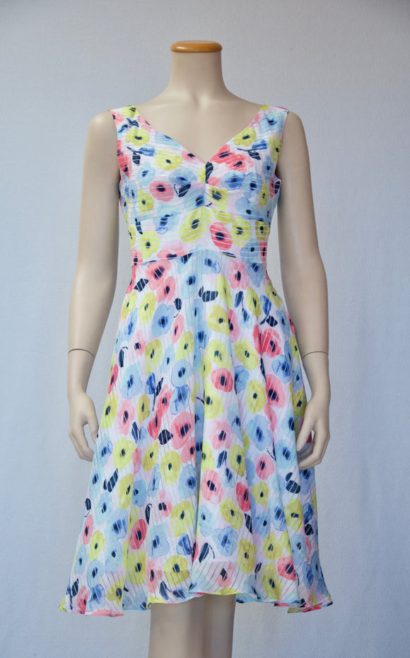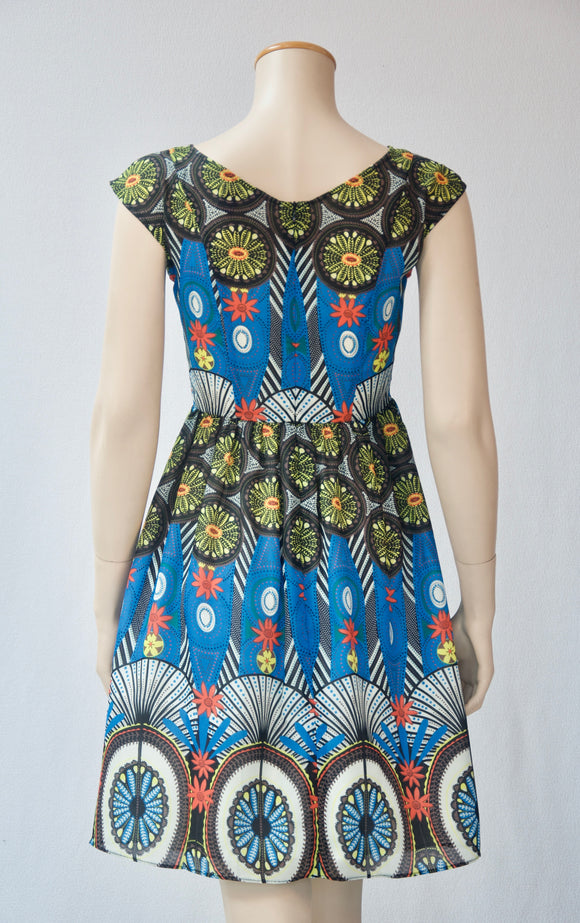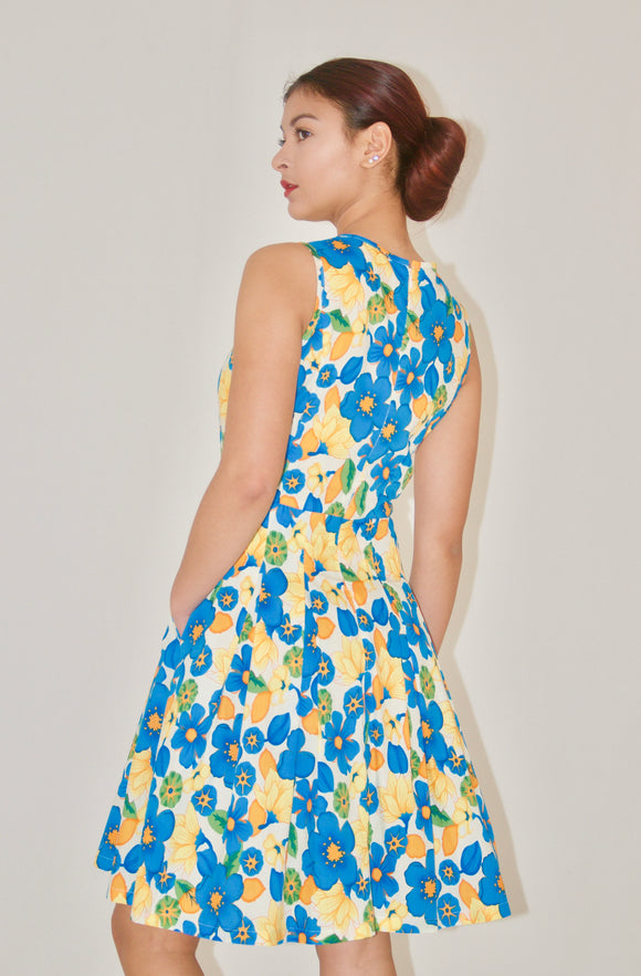 Blue and Yellow Floral Cotton Poplin A-Line Dress