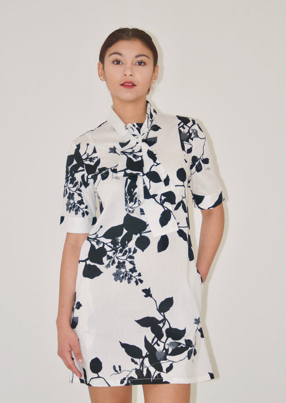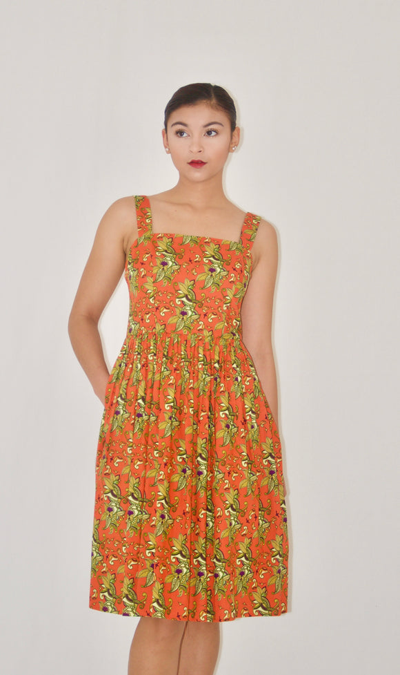 Orange Floral Print Cotton Poplin Shirtwaist Dress