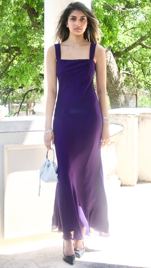 Deep Purple Wide Strap Evening Gown