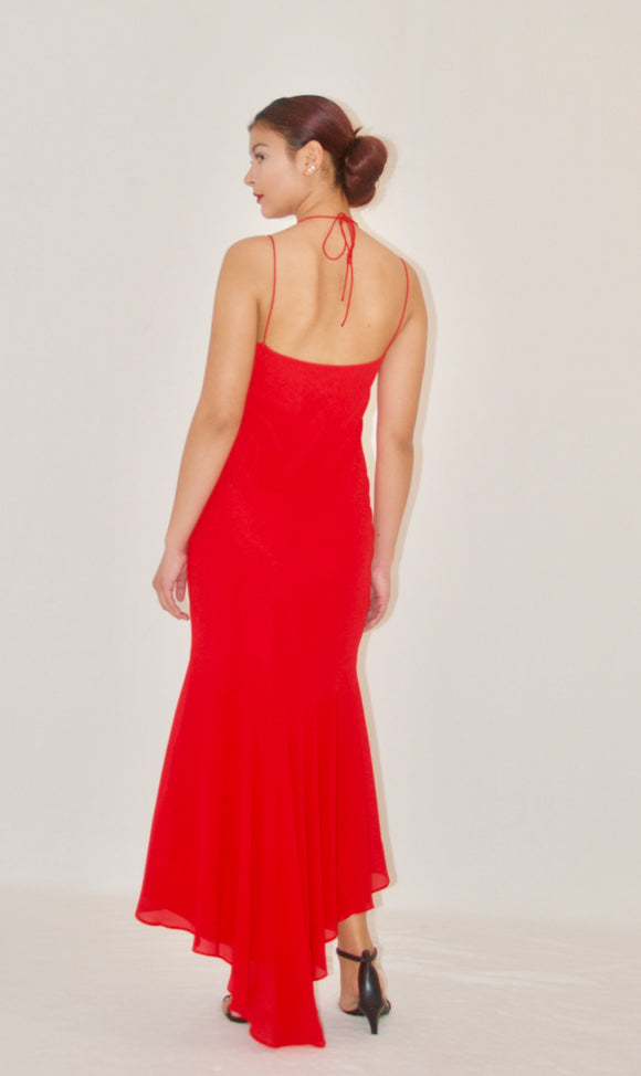 Red Double Spaghetti Strap Gown