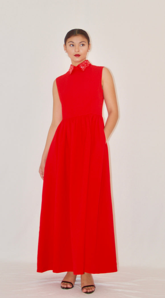 Red Sleeveless Shirtwaist Column Gown