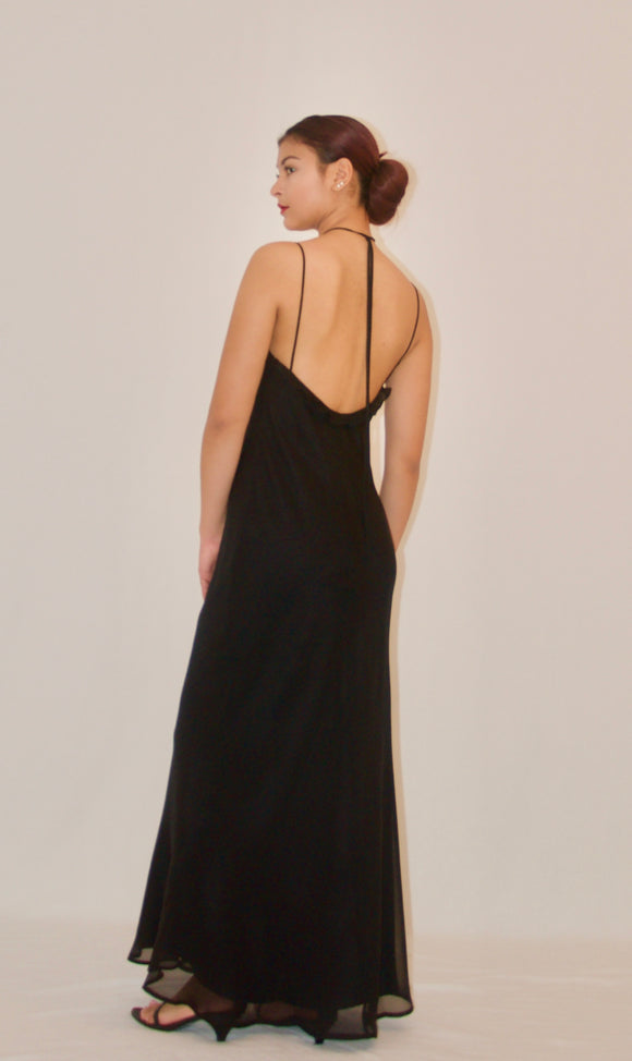 Black Halter Chiffon Gown