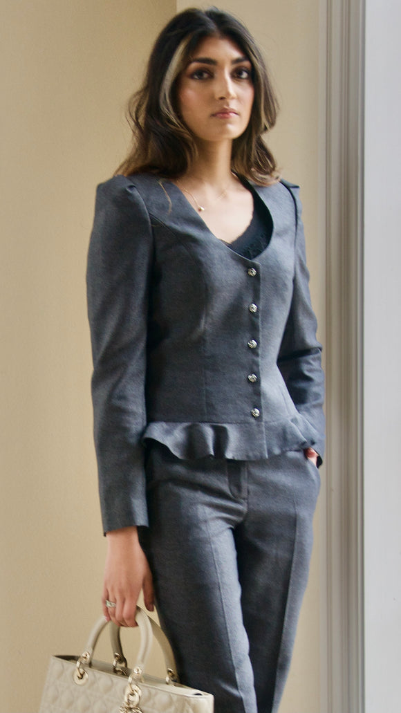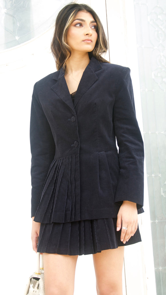 Blue Print Double Breasted Asymmetrical Peplum Jacket