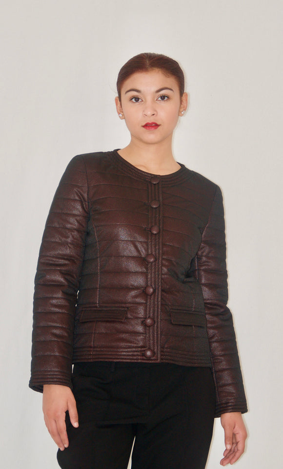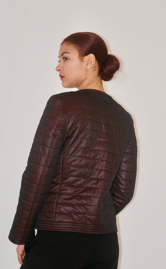 Rust Orange Floral Appliqué Round Slim Fit Jacket