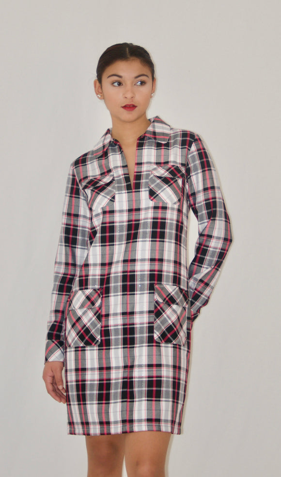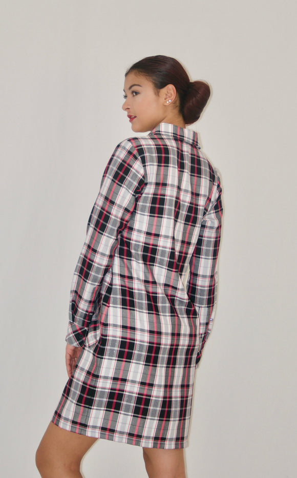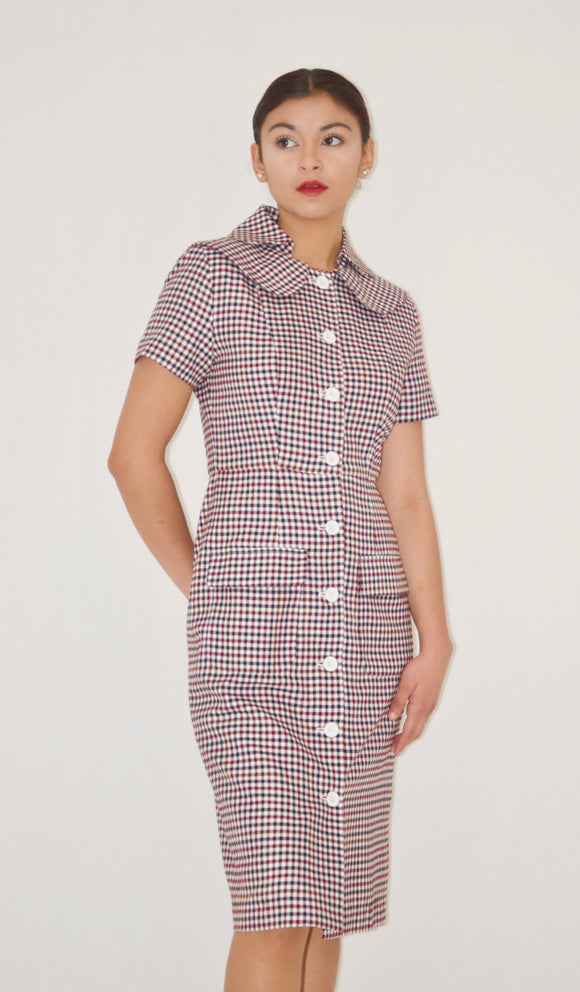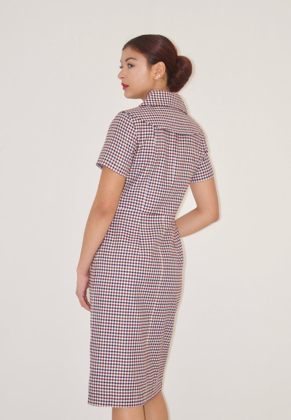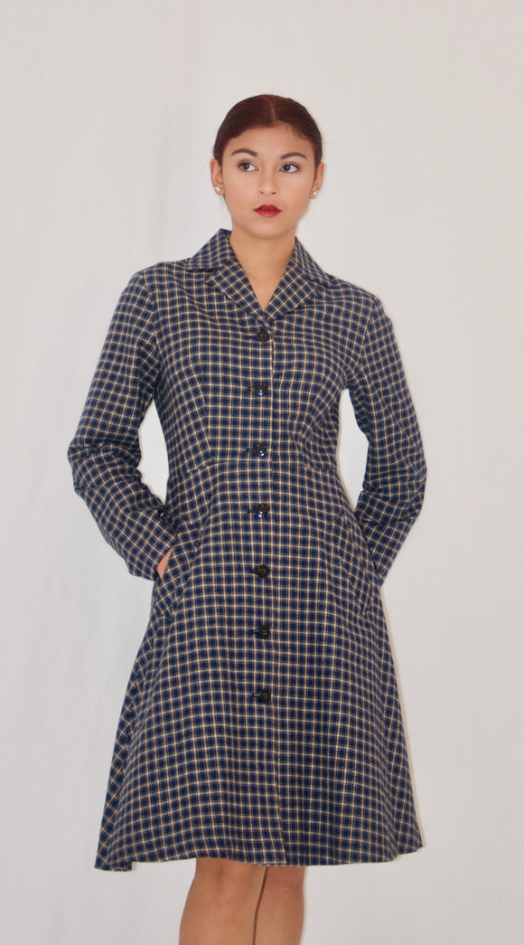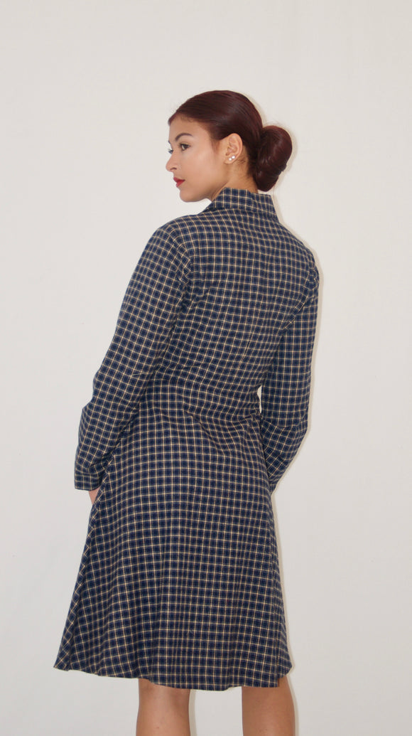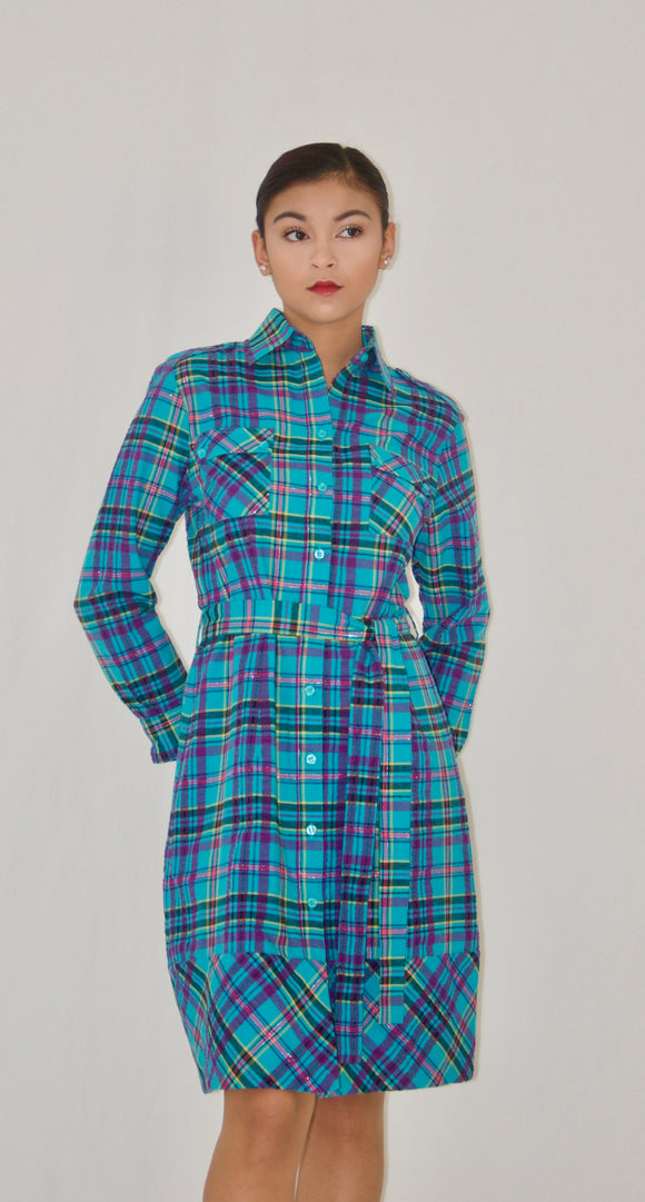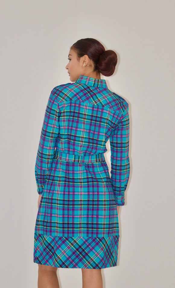 Blue Plaid Tie-Belt Shirtwaist Dress
