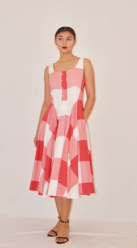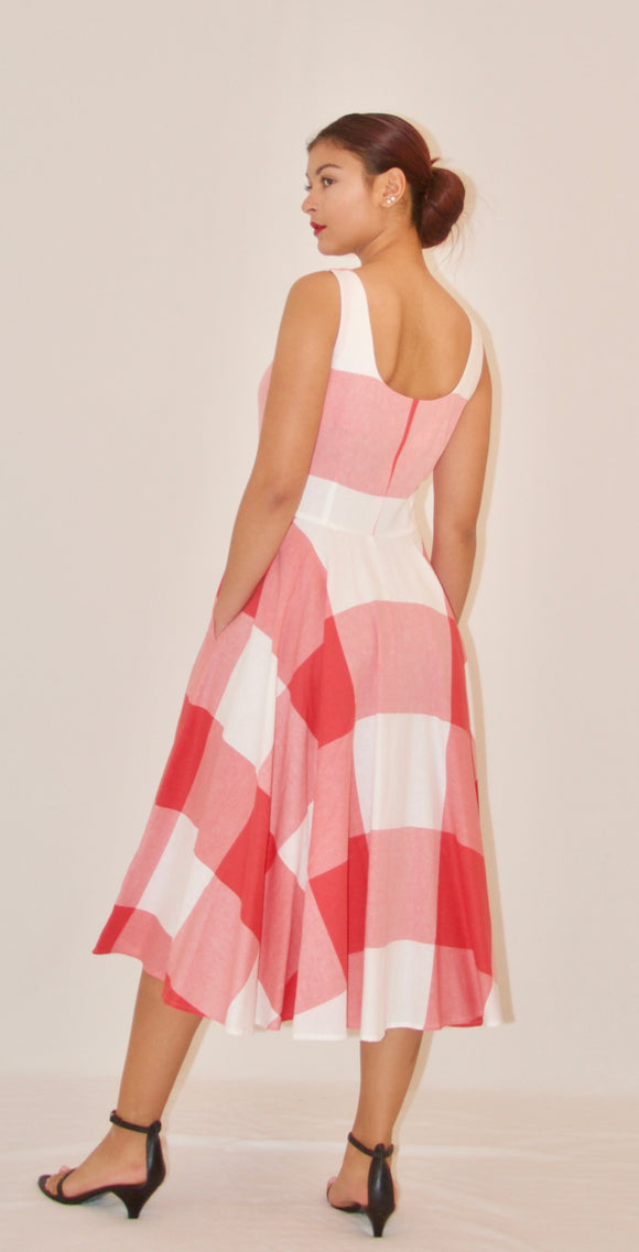 Dark Blue Plaid Poplin Tie-Strap Midi Dress