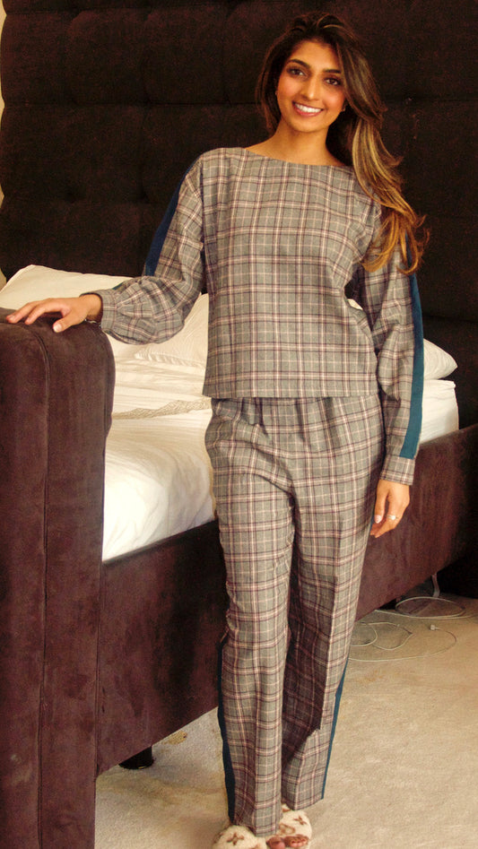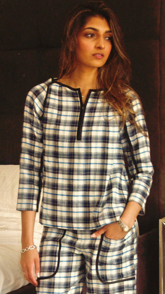 Navy Blue Plaid Cotton Pajama Capri Pants