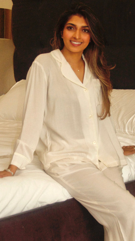 Black Rose Print Silk Satin Long Sleeve Pajama Shirt