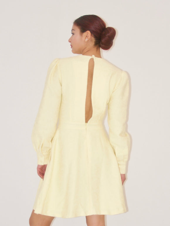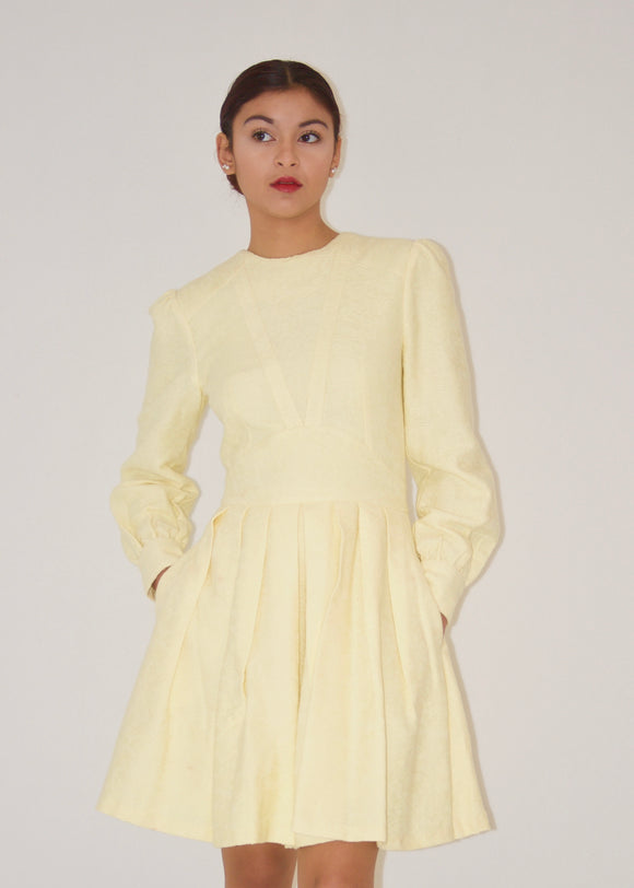 Light Yellow Bishop Sleeve Knife Pleated Dress