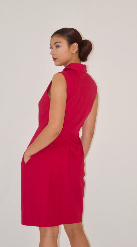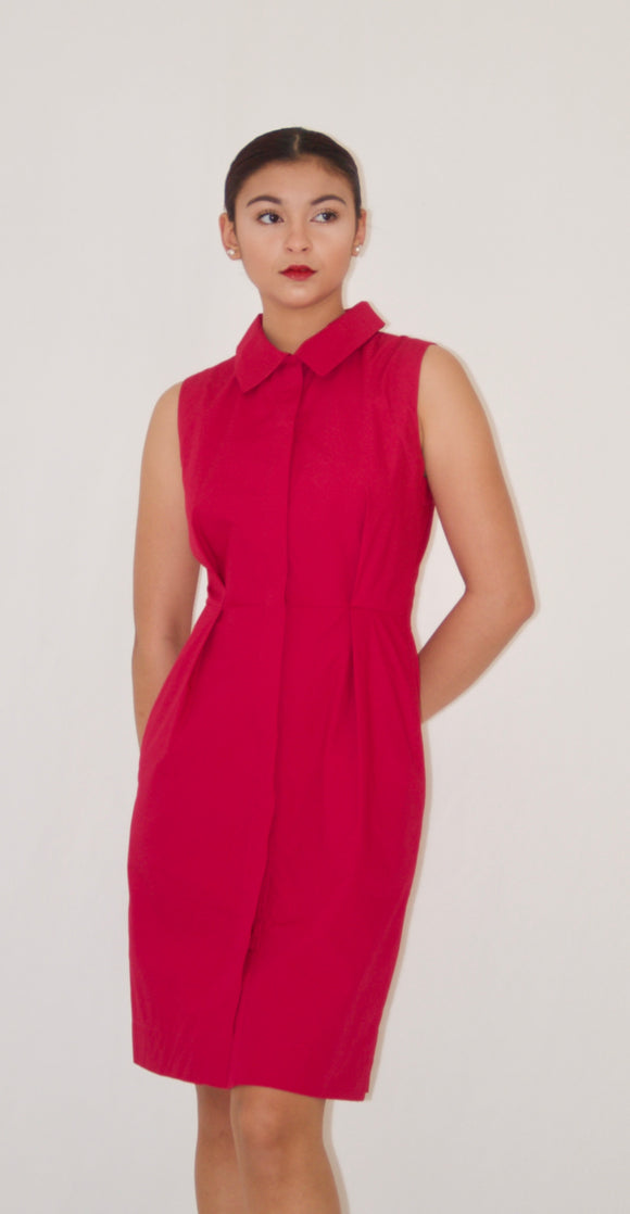 Dark Pink Cotton Poplin Sheath Shirt Dress