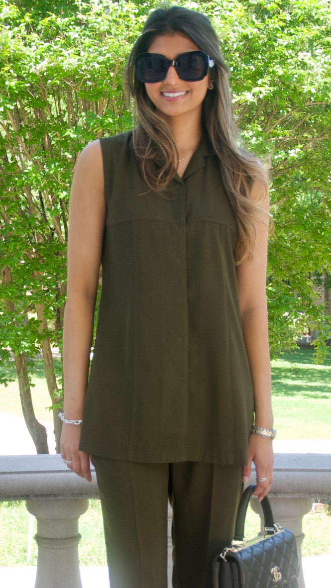 Olive Green Sleeveless Tunic Shirt