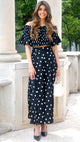 Achromatic Polka-Dot Print High Waisted Circle Maxi Skirt