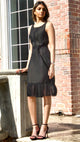 Black and Nude Lace Tie-Belt Midi Dress - XS is backordered and will ship as soon as it is back in stock.