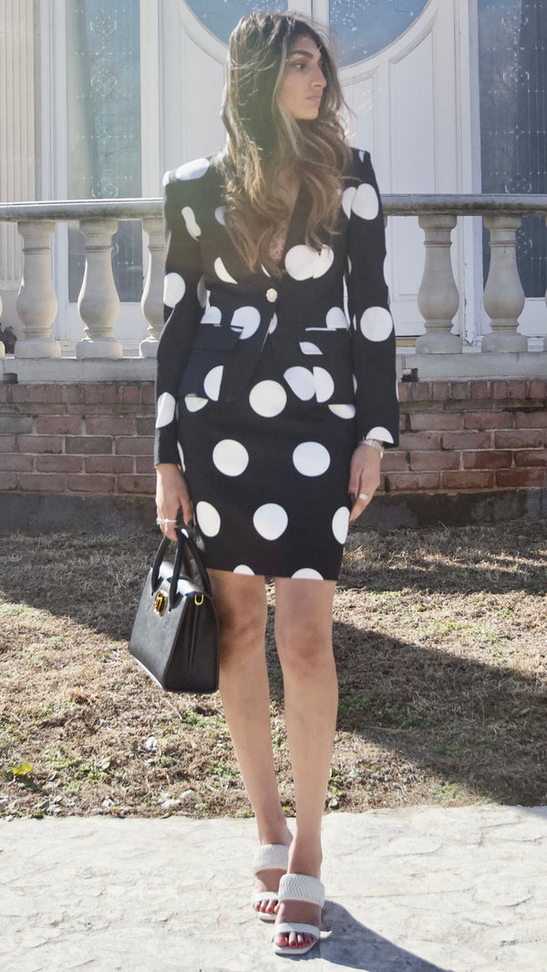Black and White Polka-Dot Print Slim Fit Jacket - XS is backordered and will ship as soon as it is back in stock.