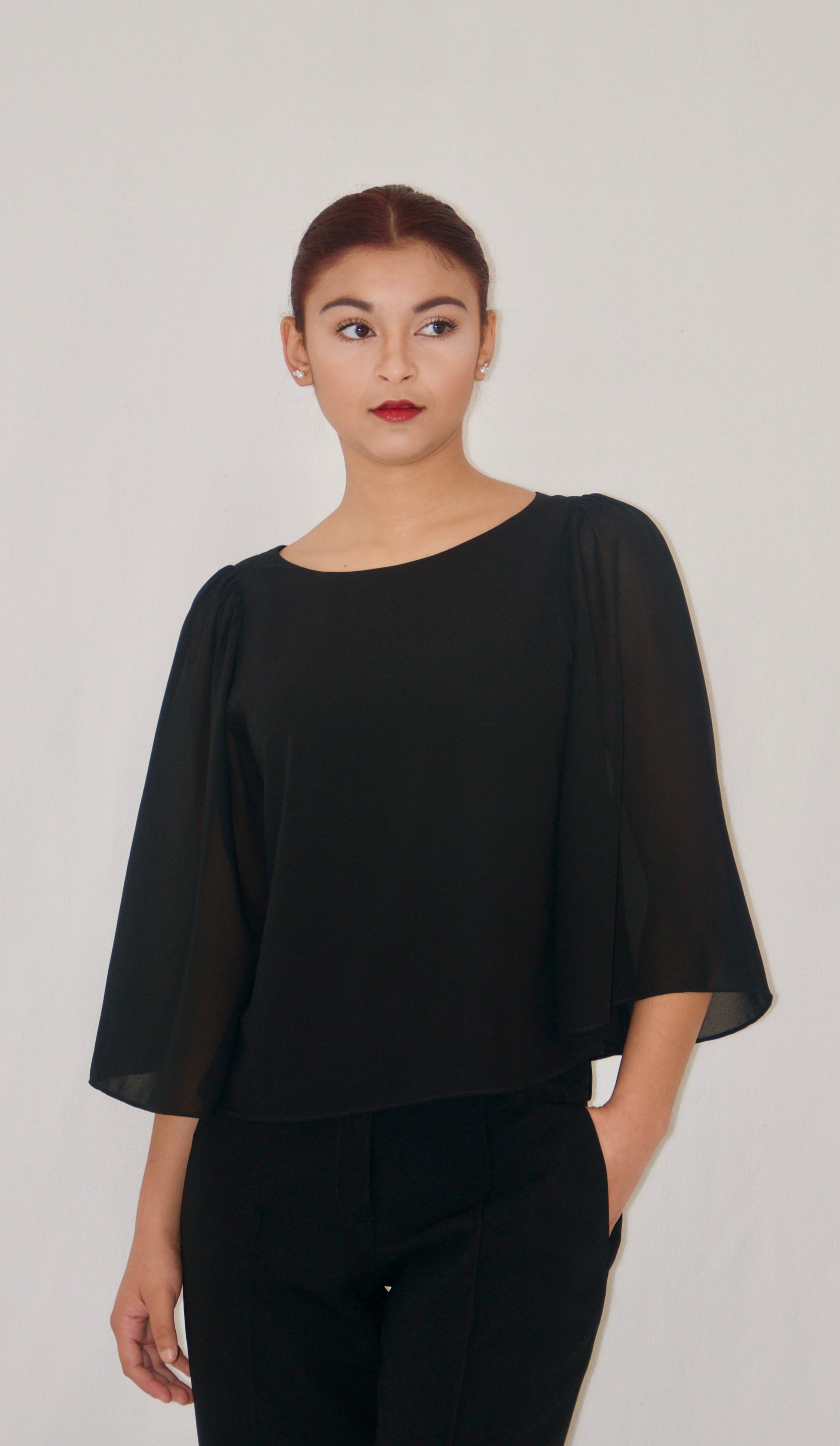 Black Chiffon Blouse - XS is backordered and will ship as soon as it is back in stock.