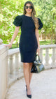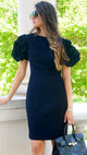 Dark Navy Gathered Puff Sleeve Sheath Dress
