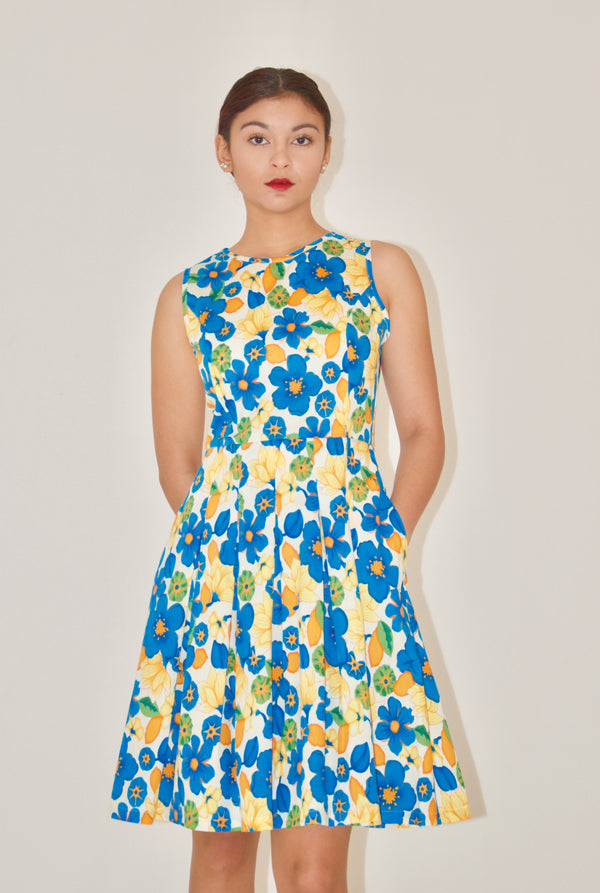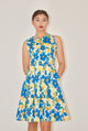 Blue and Yellow Floral Cotton Poplin A-Line Dress - XS is backordered and will ship as soon as it is back in stock.