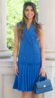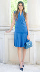 Slate Blue Knife Pleated Waistcoat Dress
