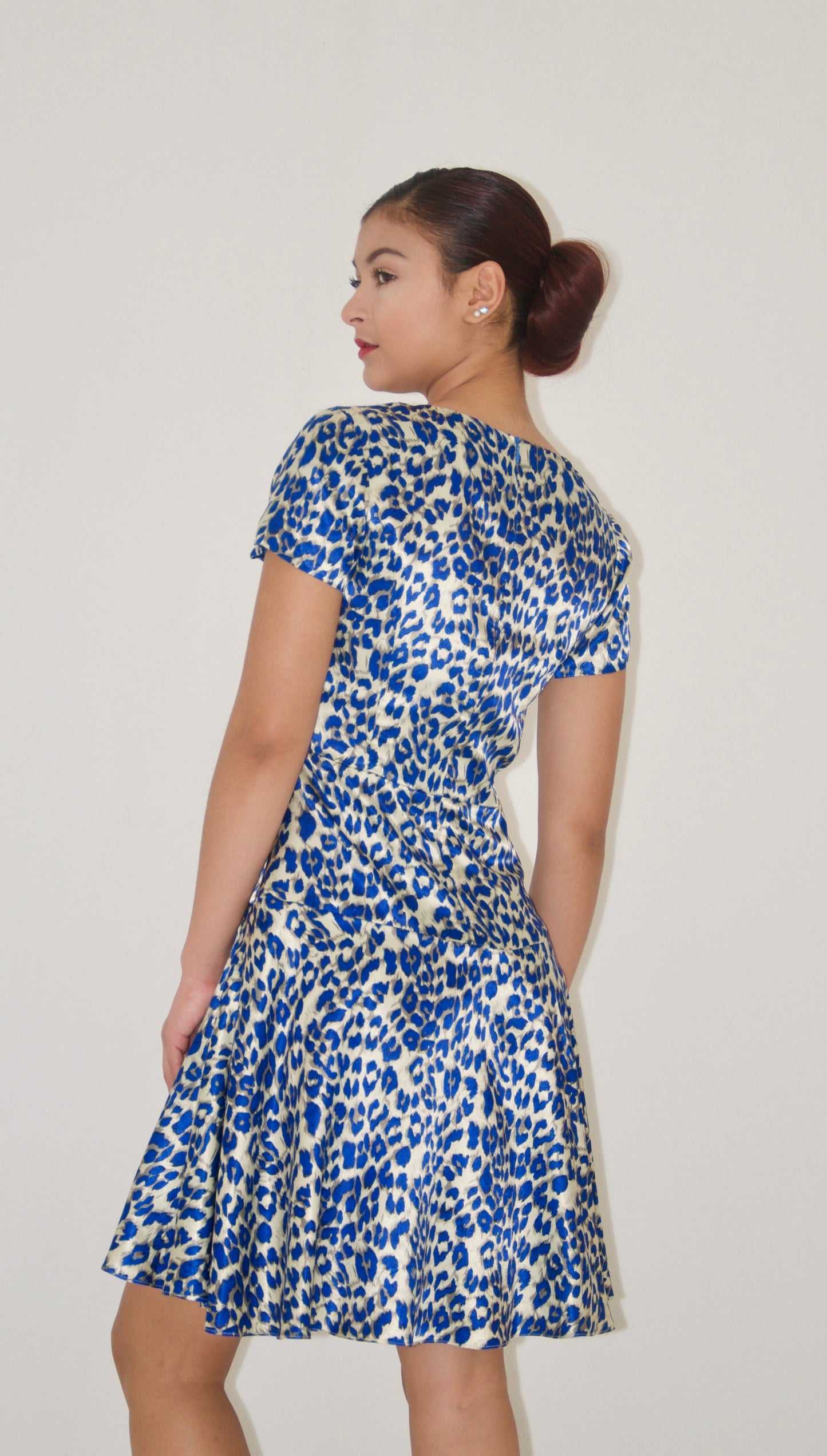 Blue Leopard Print Satin Dress - XS is backordered and will ship as soon as it is back in stock.