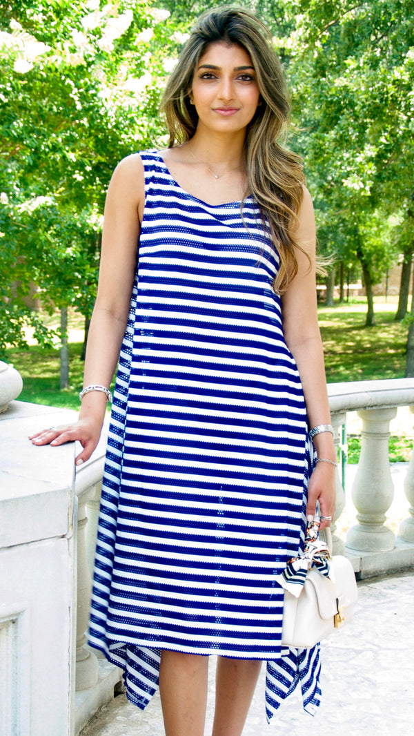 Blue Striped Sheer Handkerchief Cover Up Dress - XS is backordered and will ship as soon as it is back in stock.