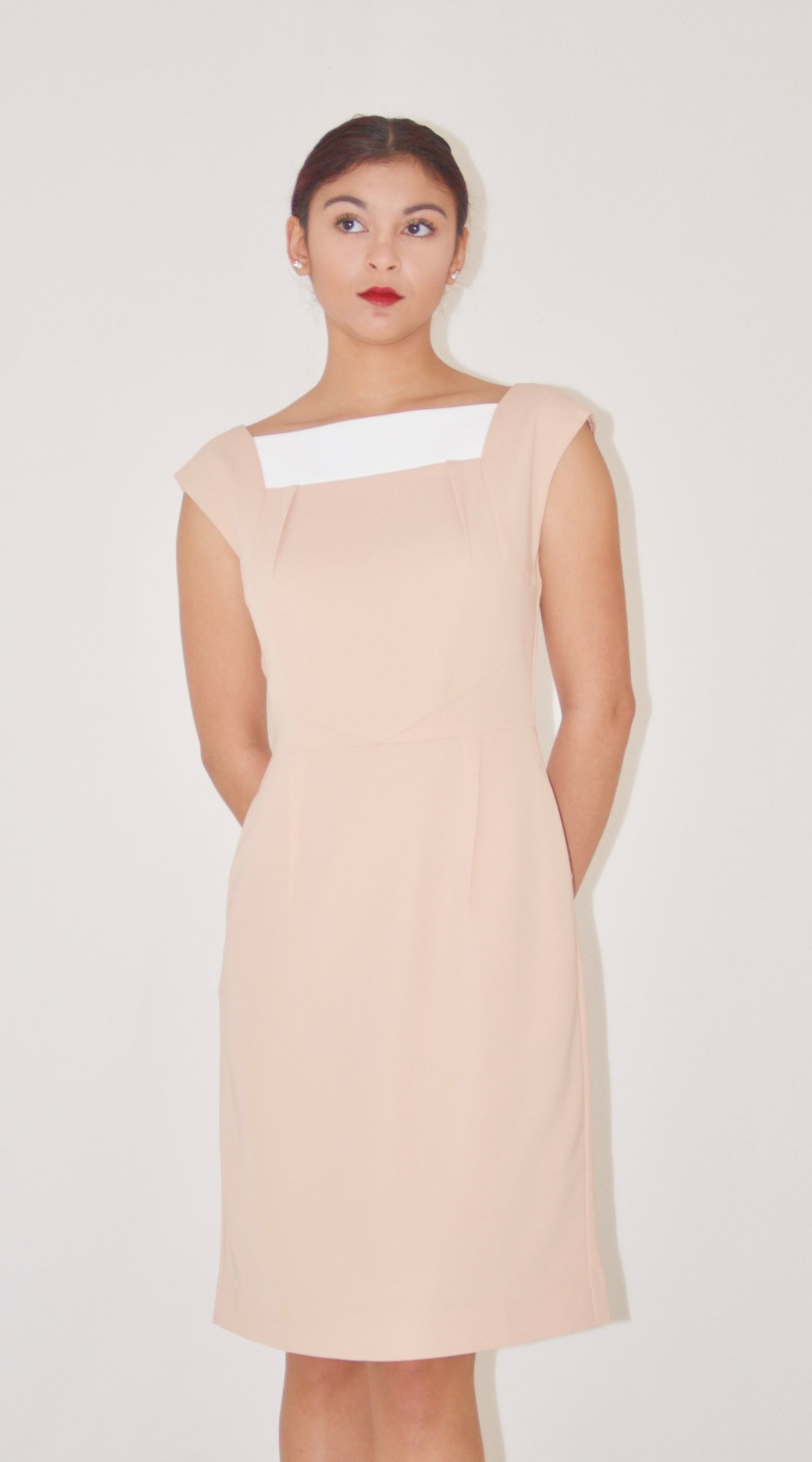 Cream and White Accent Sheath Dress - XS is backordered and will ship as soon as it is back in stock.