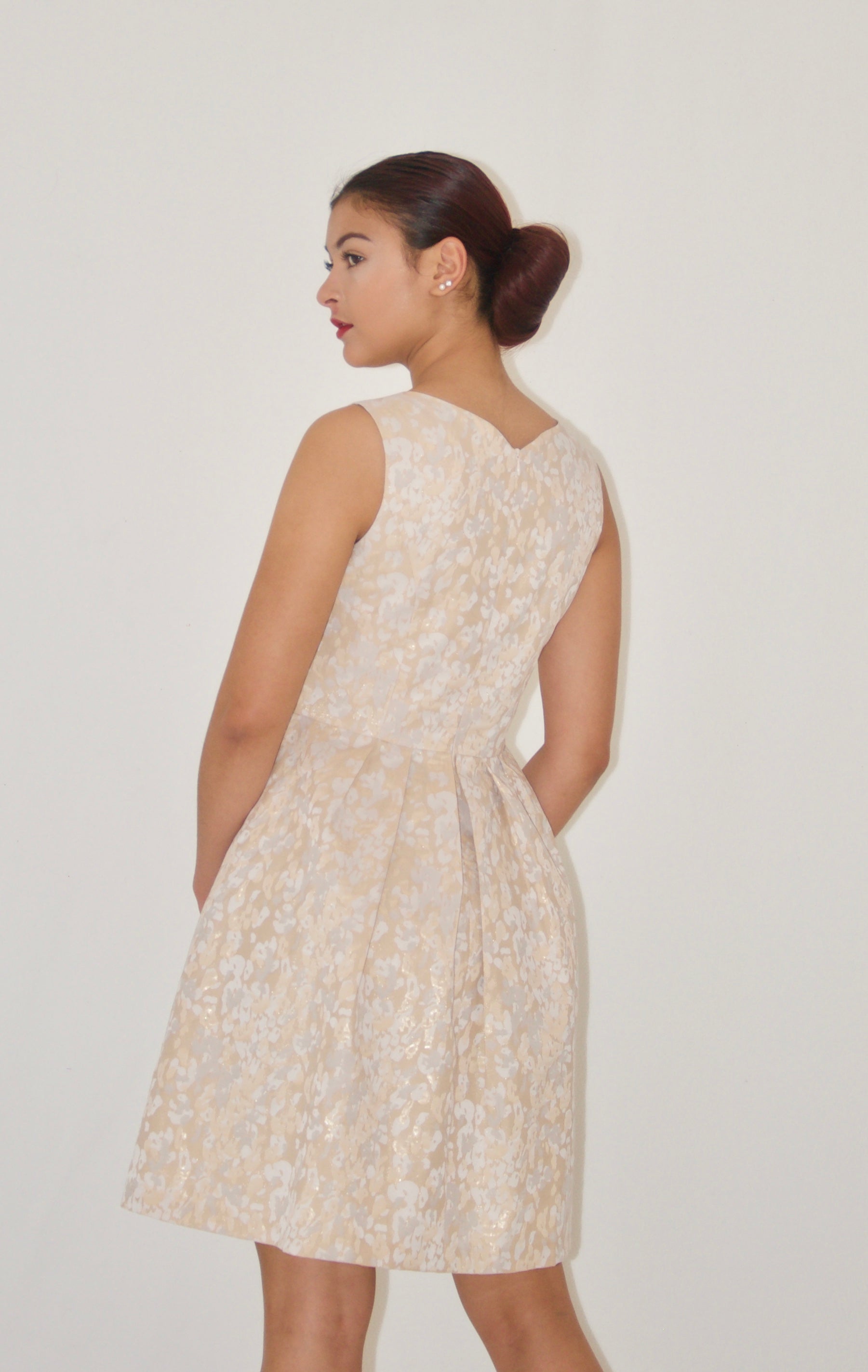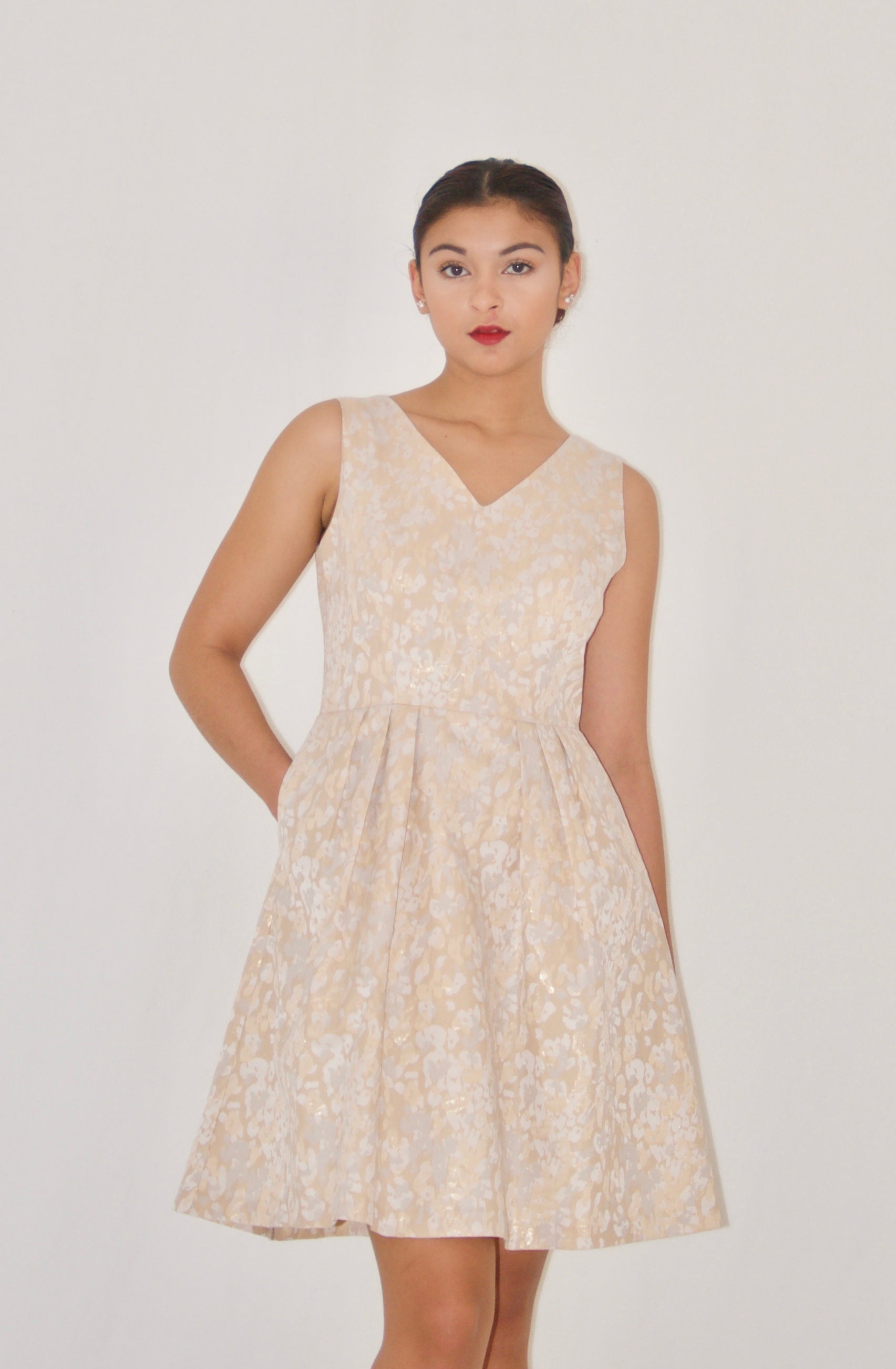 Cream Jacquard Print Fit and Flare Dress - XS is backordered and will ship as soon as it is back in stock.