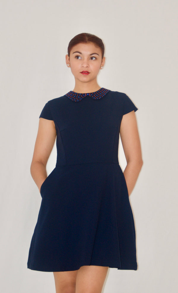 Dark Navy Embellished Peter Pan Collar Mini Dress - XS is backordered and will ship as soon as it is back in stock.
