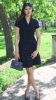 Dark Navy Short Sleeve Double Breasted Waistcoat Dress